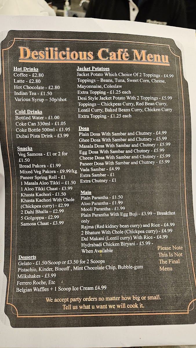 Desilicious Café Menu